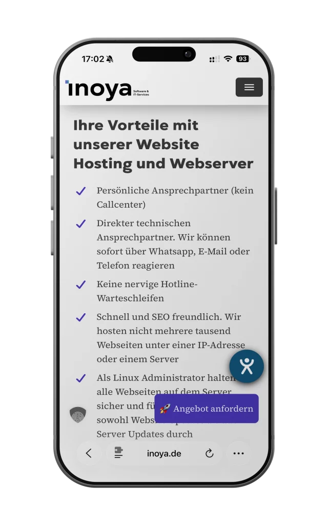 Für Projekte mit besonderen Anforderungen arbeite ich optional mit INOYA aus Düsseldorf zusammen. Dort entstehen individuell betreute Hosting-Umgebungen, die sich vor allem dann eignen, wenn flexible Skalierung, spezielle Serverkonfigurationen oder eine engere technische Betreuung notwendig sind.